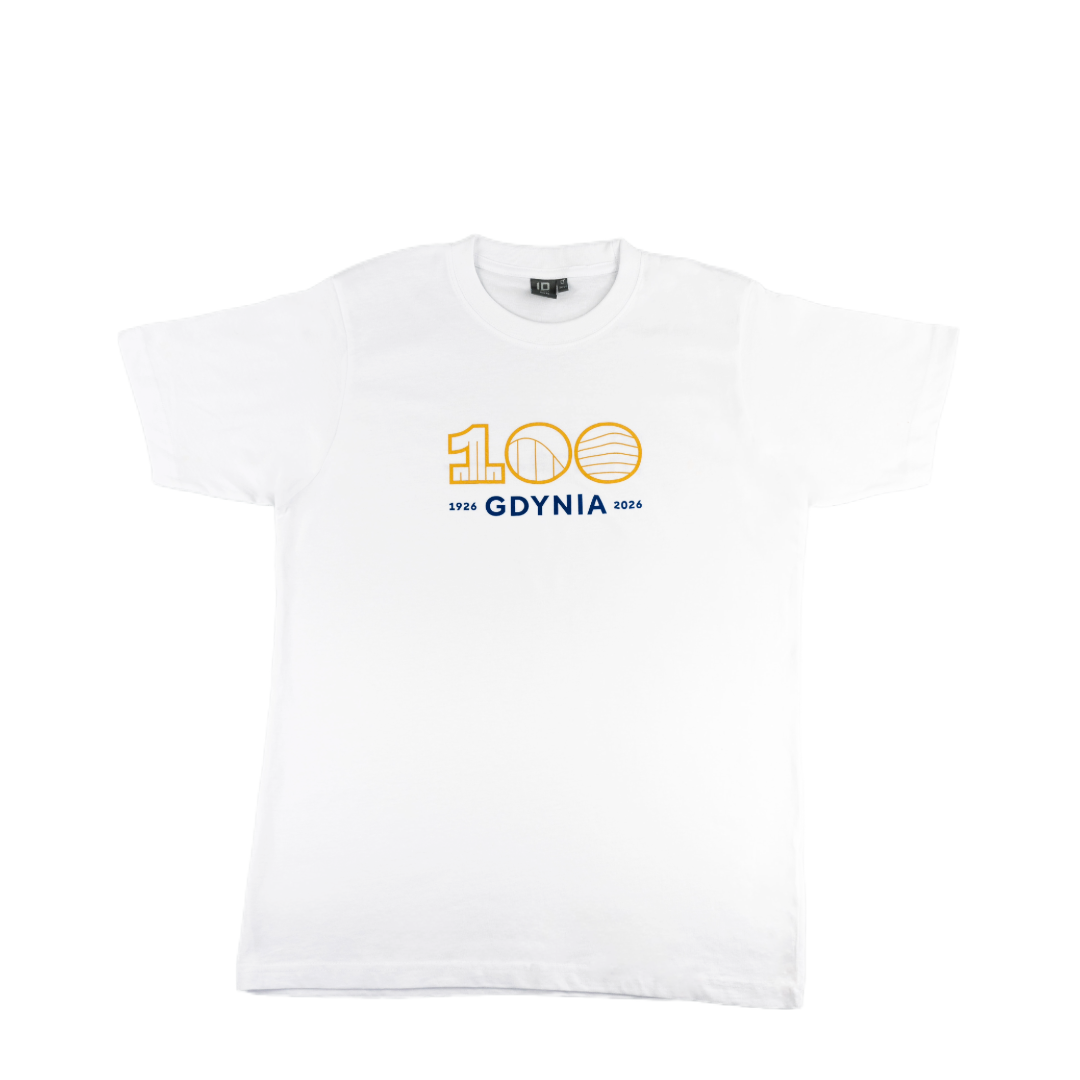 Unisex koszulka z krótkim rękawem z nadrukowanym logo 100-lecia miasta Gdyni.