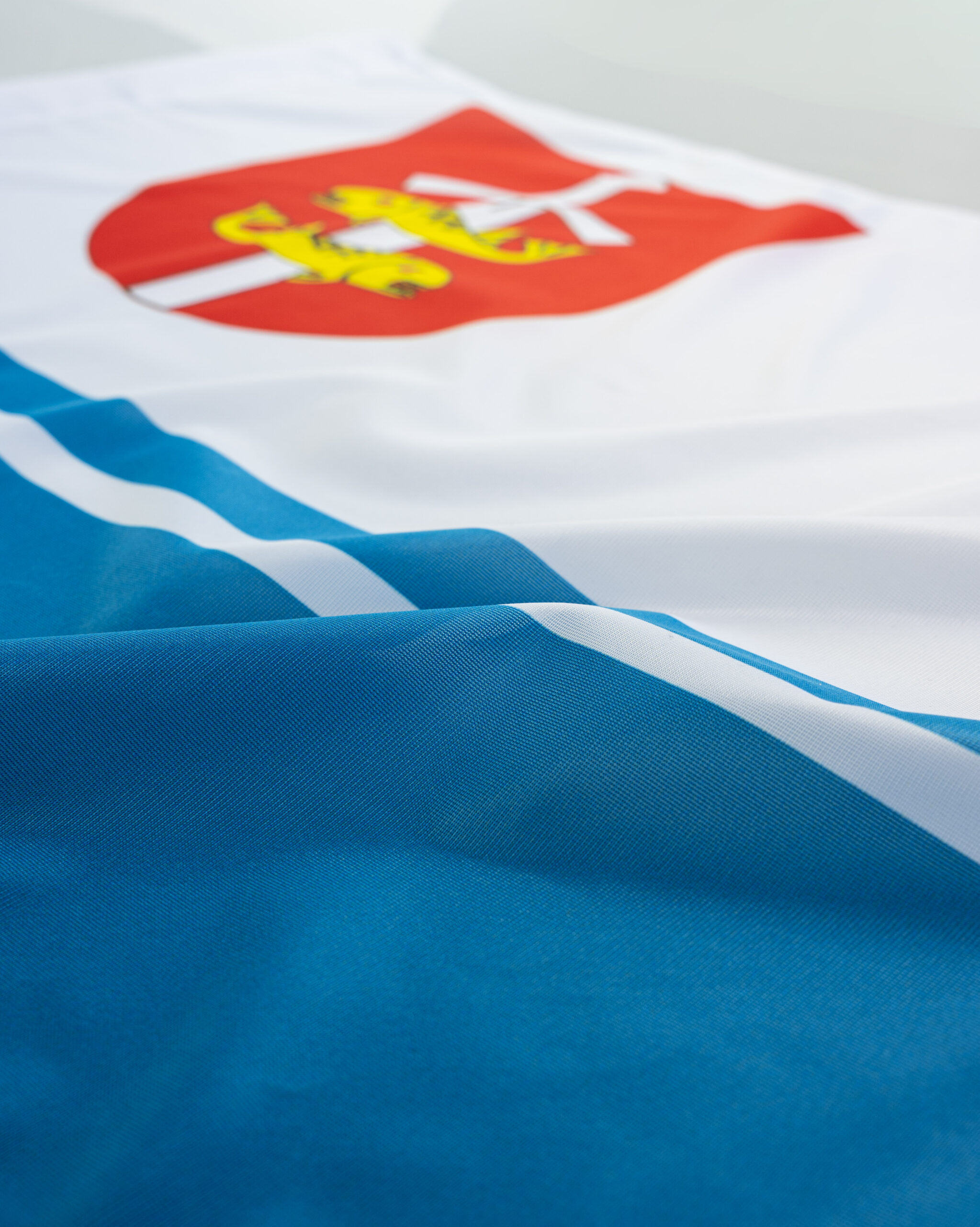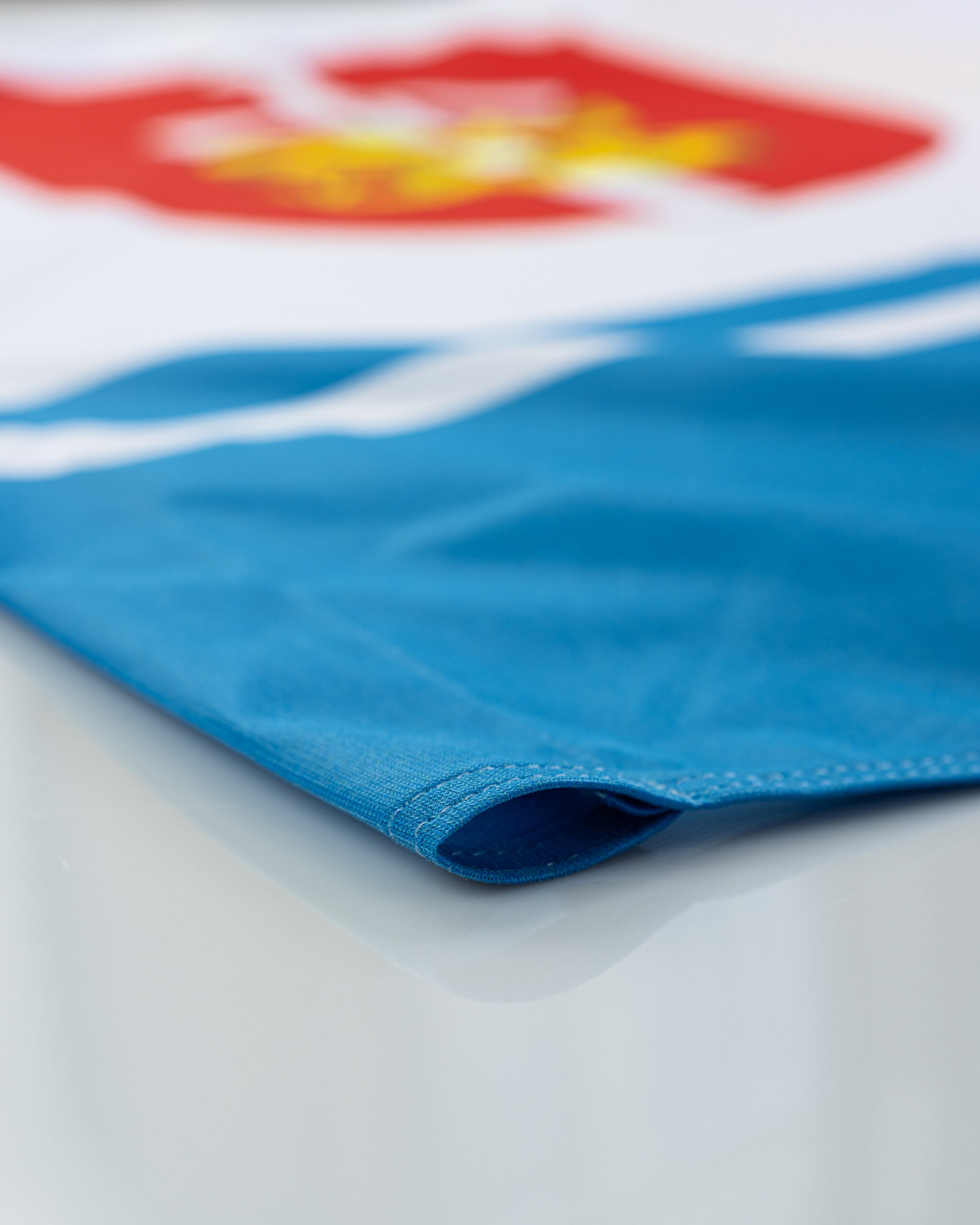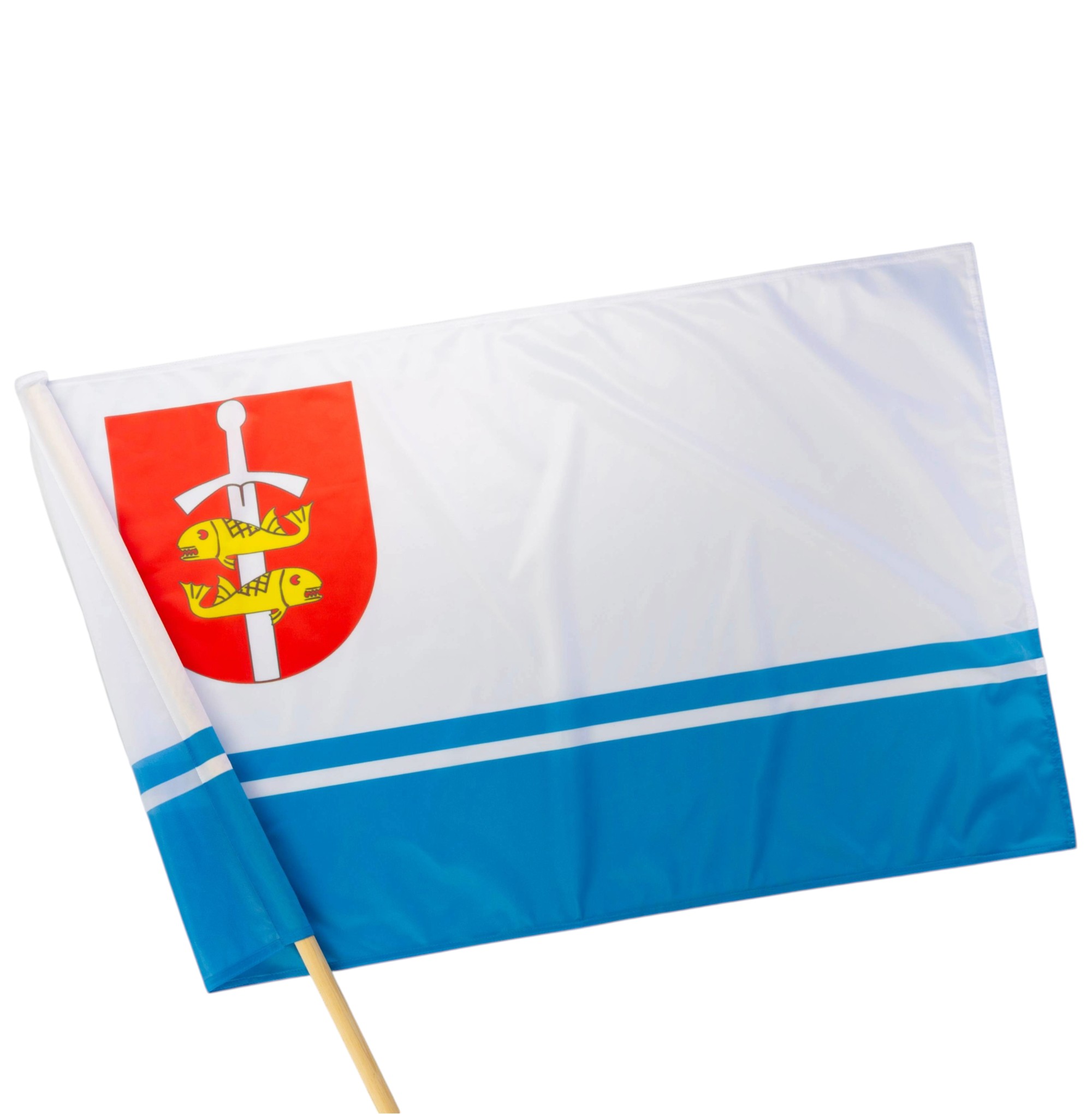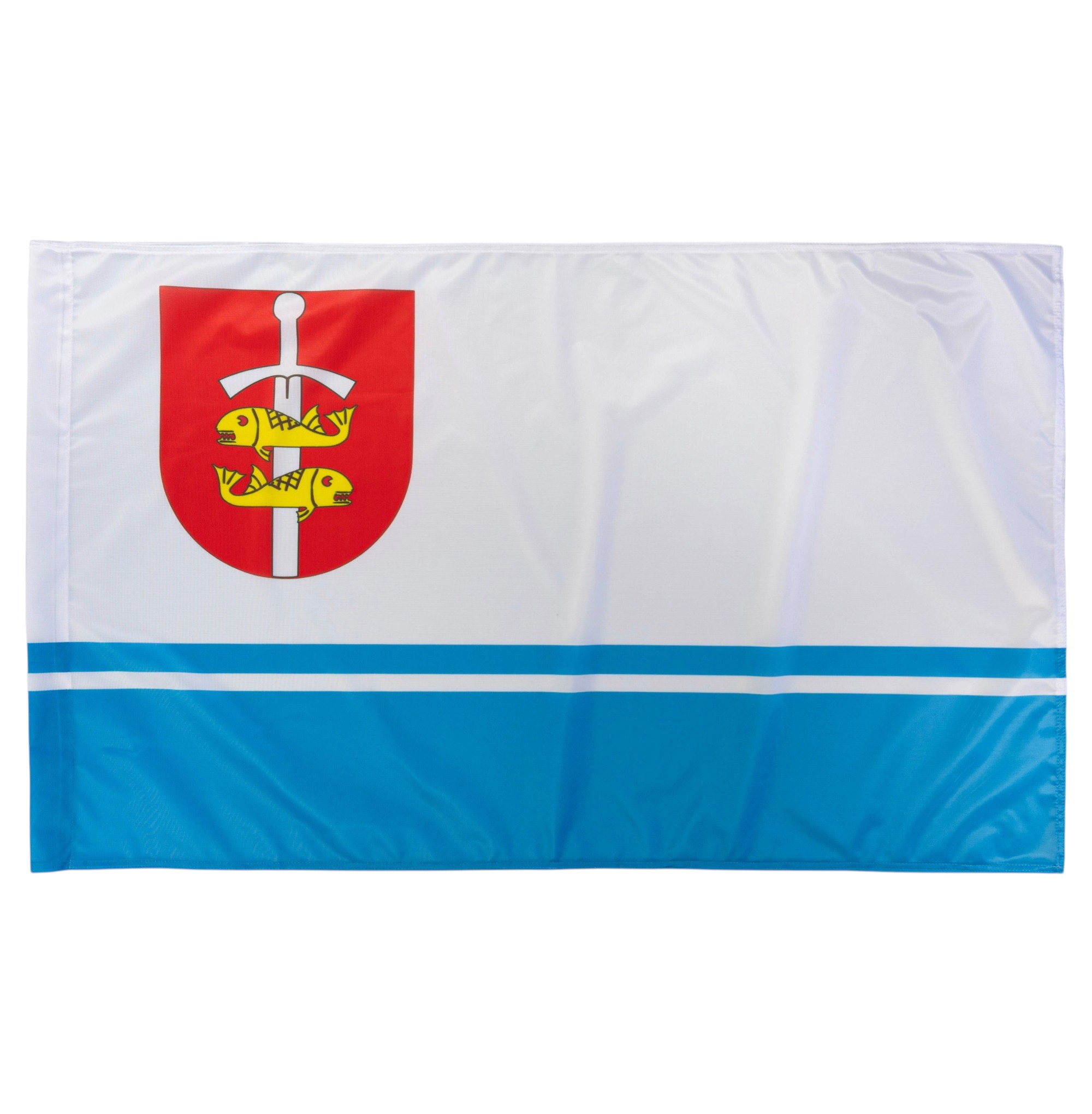 Oficjalna flaga miasta Gdyni z tunelem na drzewiec.