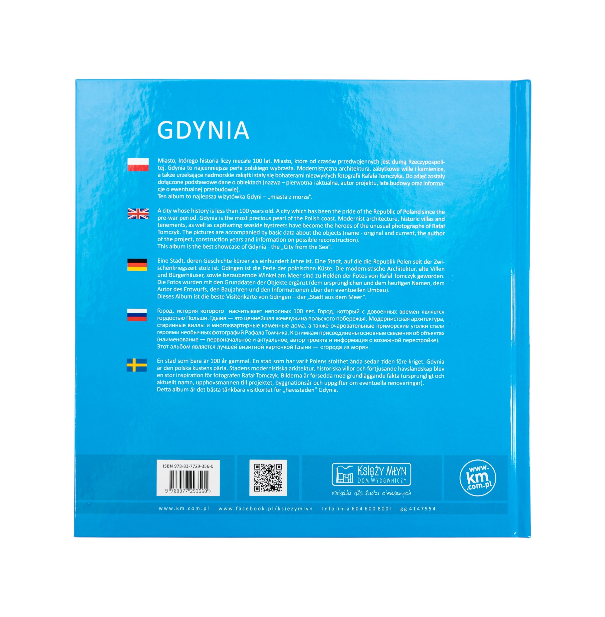 „Miasto, które od czasów przedwojennych jest dumą Rzeczypospolitej. Gdynia zachwyca unikalną architekturą i szczególnym położeniem. Co roku przyciąga turystów, którzy podziwiają zabytkowe wille i kamienice, obowiązkowo przechadzają się reprezentacyjną ulicą Świętojańską, docierają także do urzekających zakątków Kamiennej Góry. Te niezwykłe klimatyczne miejsca i unikalna architektura modernistyczna zostały uwiecznione na fotografiach Rafała Tomczyka, który uchwycił ponadczasowe piękno Gdyni.”