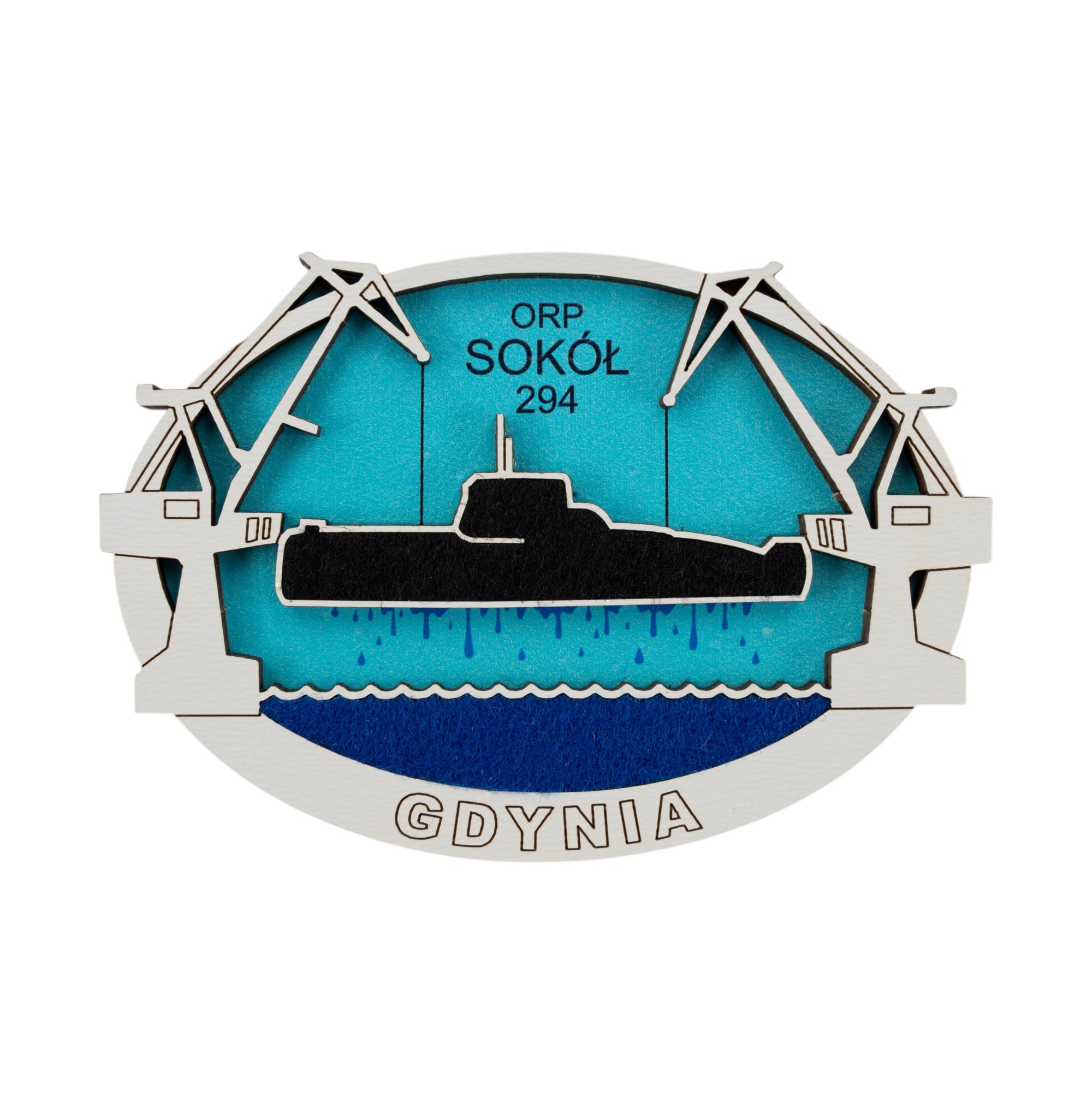 Magnes ze sklejki z elementami filcowymi z okrętem podwodnym Marynarki Wojennej typu Kobben „Sokół” .