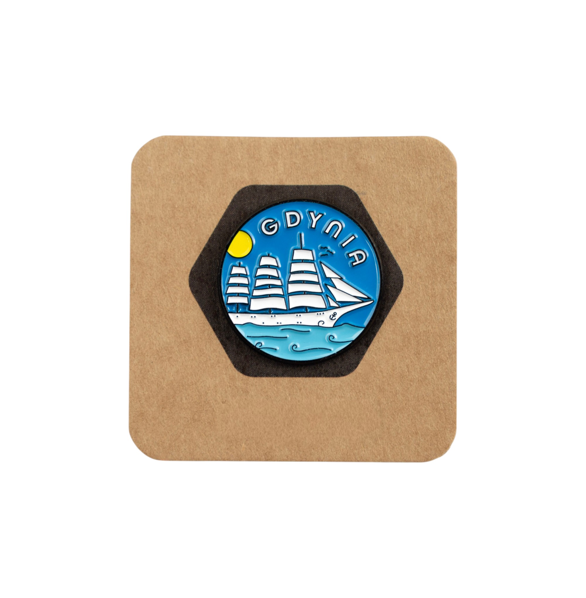 Pin przedstawia statek szkoleniowy Uniwersytetu Morskiego w Gdyni  – Dar Młodzieży.